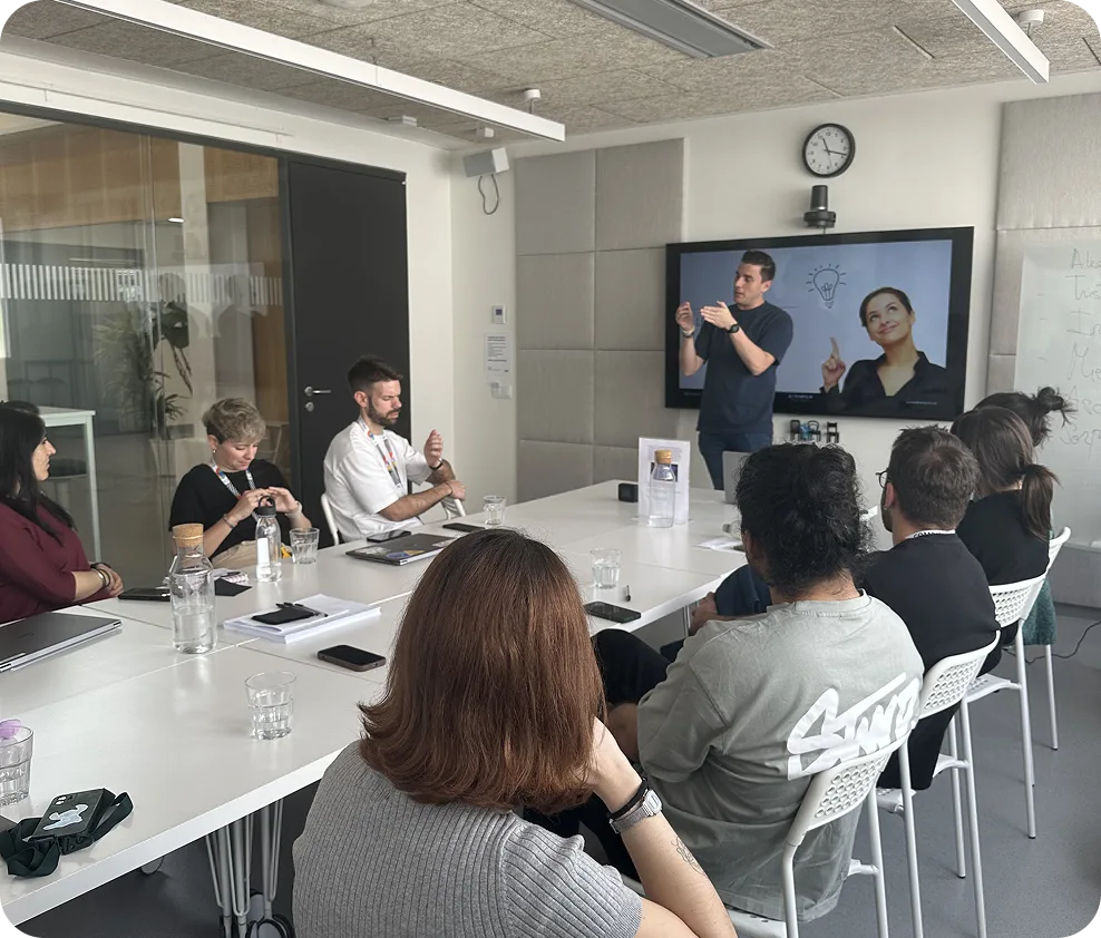 Formaciones para equipos, talleres in-company y programas de liderazgo. Mejora la comunicación interna y el rendimiento.